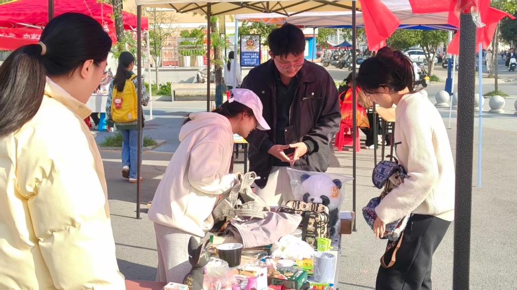 活动现场暖意融融,学生们用行动诠释了青春的担当与温情。本次义卖活动由学生志愿者自发组织,他们利用课余时间精心布置摊位,将闲置的文具、书籍、玩偶和手工艺品逐一摆放整齐。每一件物品都凝聚着捐赠者的爱心与故事,承载着他们对他人的一片心意。"任意物品,一元购"的义卖方式让爱心以最公平地传递。参与者只需支付一元,就能带走心仪的物品。无论是实用的学习用品,还是充满艺术气息的手工艺品,都因其亲民的价格和丰富的内容吸引了不少同学驻足。活动现场热闹非凡,人头攒动。同学们不仅积极参与义卖,还主动帮助维持秩序,耐心解答前来咨询的同学问题。