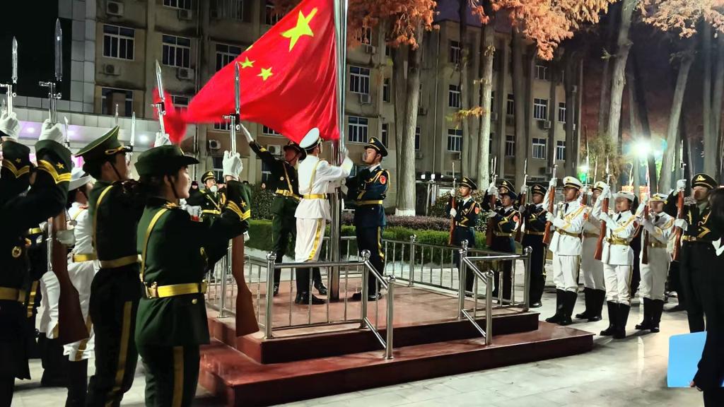 12月8日,女仆a片 在行政楼前隆重举行了升旗仪式,女仆a片党委副书记张丽、武装干事赵雪出席活动,学生党员、学生干部代表及2025级全体新生共同参与此次活动。