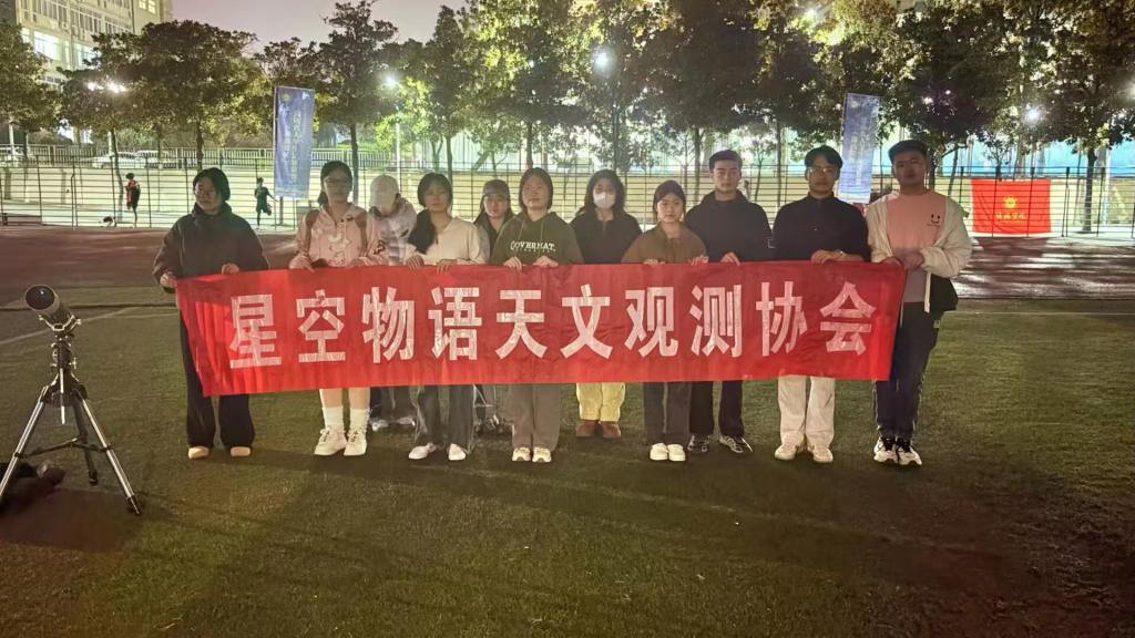活动伊始,负责人王诗雨围绕月球基础知识、太阳系天体概况及基础观测技巧展开科普讲解。她用通俗易懂的语言,结合便携观测设备,向同学们介绍了月球表面的环形山特征,并详细演示了天文望远镜的调试与观测流程,耐心解答在场同学提出的各类天文疑问,帮助同学们初步掌握天文观测相关知识。在分组实操环节,同学们在志愿者的引导下动手调试设备、调节焦距,近距离观测月亮,清晰观测到月球明暗交界线与表面凹凸的纹理轮廓。大家边看边交流心得,相互讨论天文知识,在亲手探索中感受宇宙的静谧与浪漫。现场互动氛围浓厚,学习热情高涨。