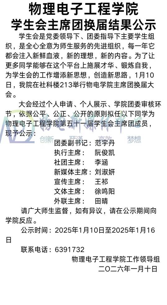 女仆a片 学生会主席团换届结果公示