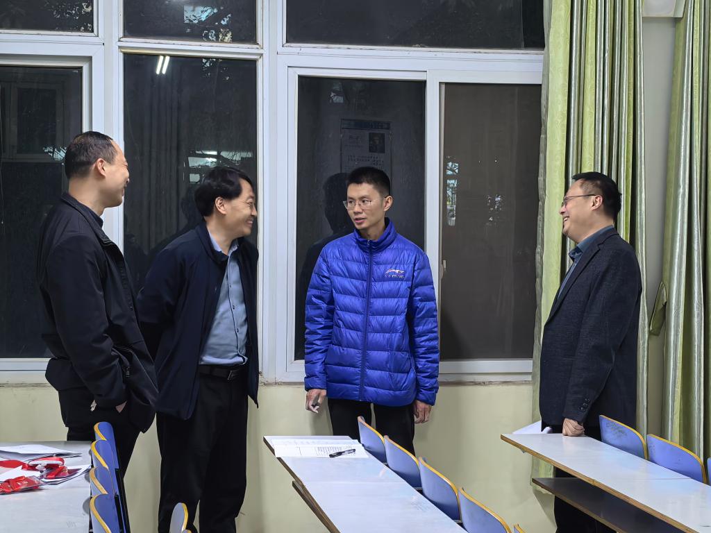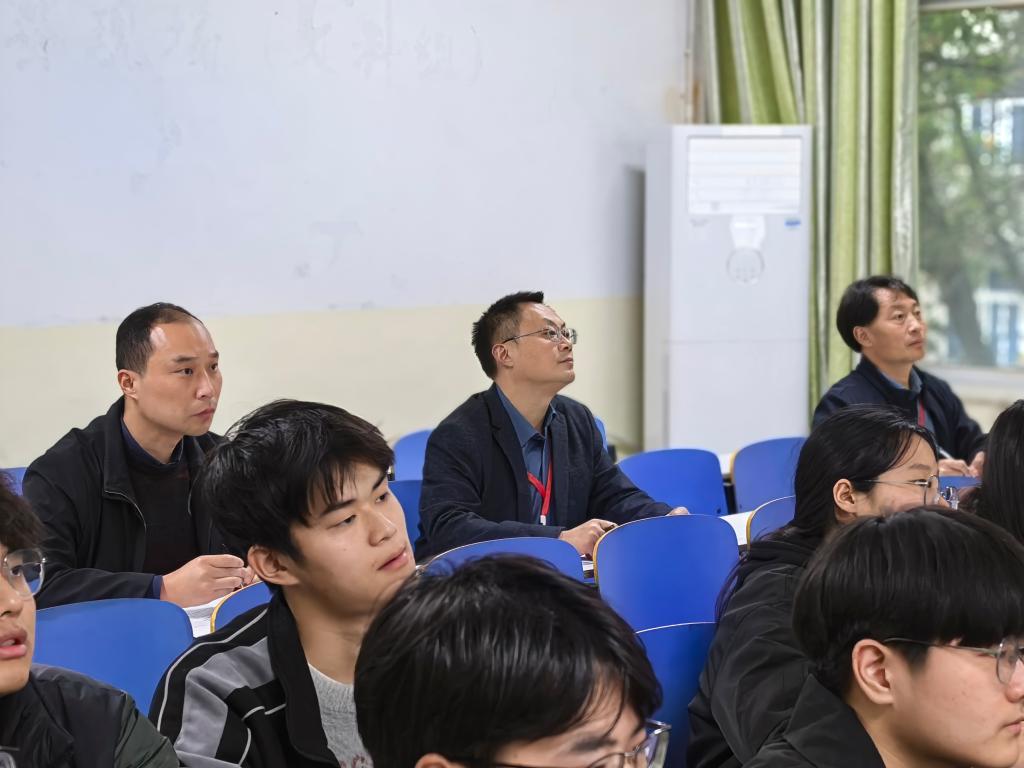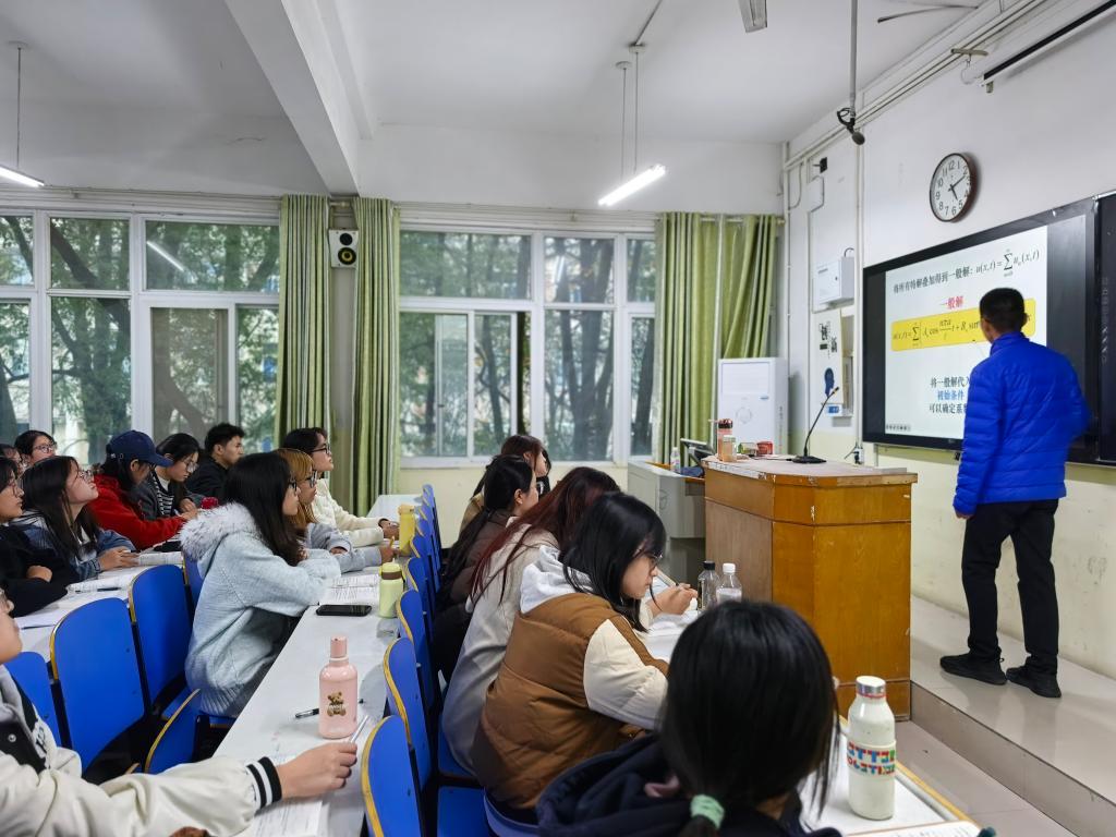 女仆a片领导推门进入谭山校区陈鹏老师的《数学物理方法》课堂,重点关注教学内容、课程思政、课堂组织、教学设施等情况。教师教学准备充分,师生精神饱满。课后,方明科,龚克,宋宣玉与任课教师深入交流,从优化课程设计、改进教学方法、运用信息技术等方面提出中肯建议。