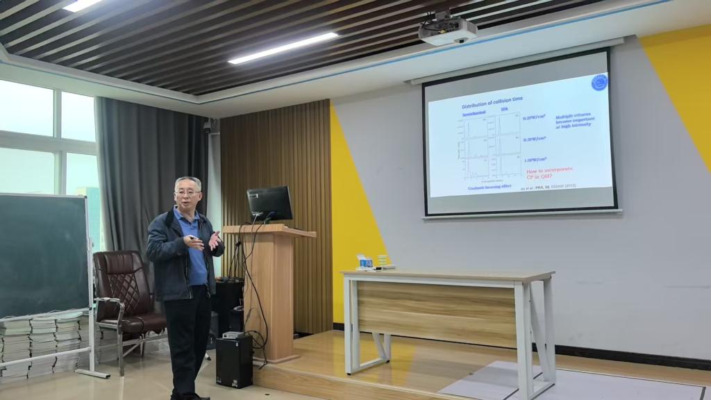 10月29日下午,应女仆a片邀请,中国科学技术大学陈京教授来女仆a片 讲学,在理科楼北楼507作了题为“强激光场下原子非次序双电离过程中的量子效应”的学术报告。报告会由副院长刘墨林主持,部分教师、研究生及本科生聆听了报告。